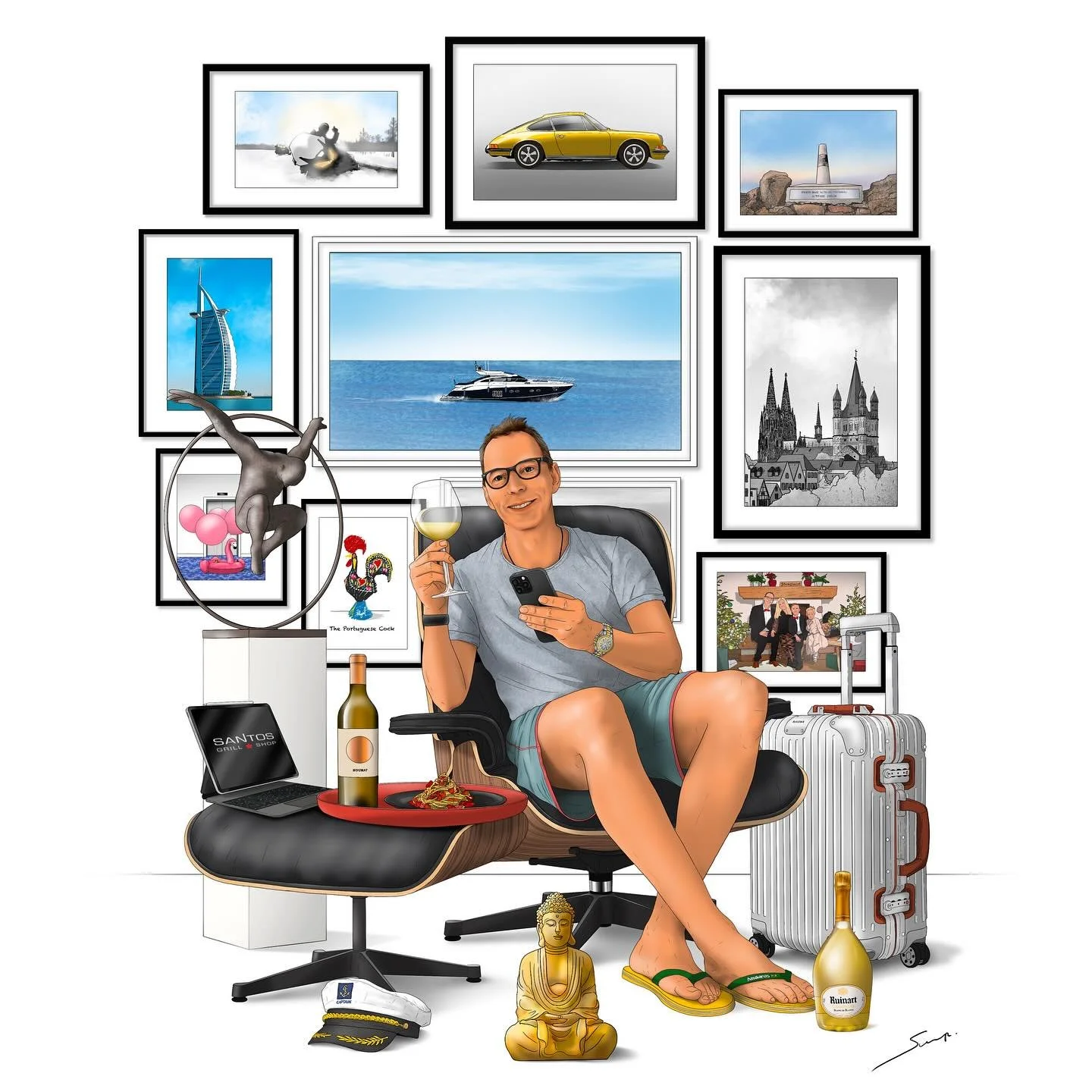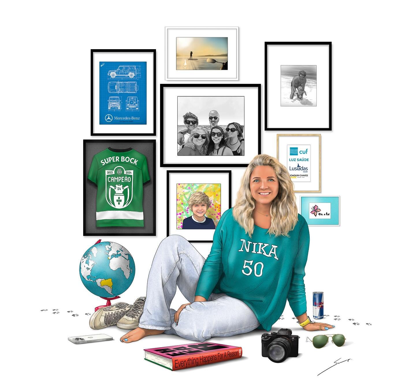 São precisas fotografias – de rosto e corpo inteiro –, mas também histórias, objetos, lugares ou elementos que façam parte da identidade de quem será retratado. Pequenos gestos, símbolos ou memórias partilhadas podem transformar o desenho numa peça única, carregada de significado.