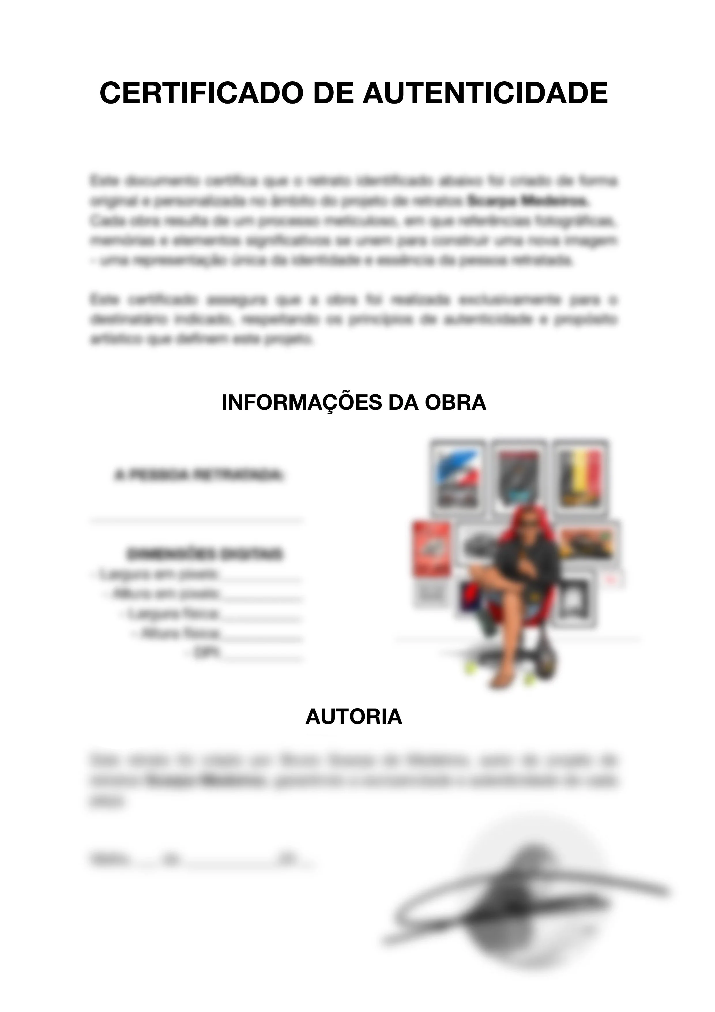 Mais do que um detalhe, este certificado reforça a exclusividade do retrato, assegurando que cada peça é verdadeiramente única.
